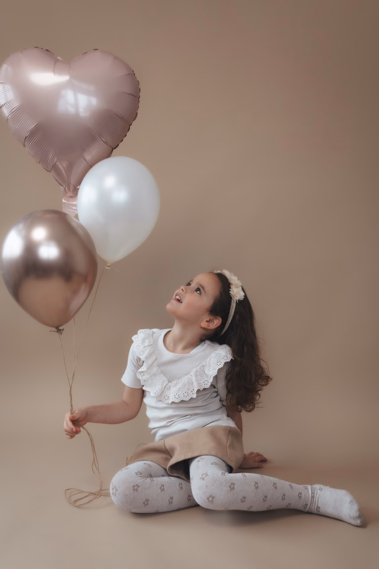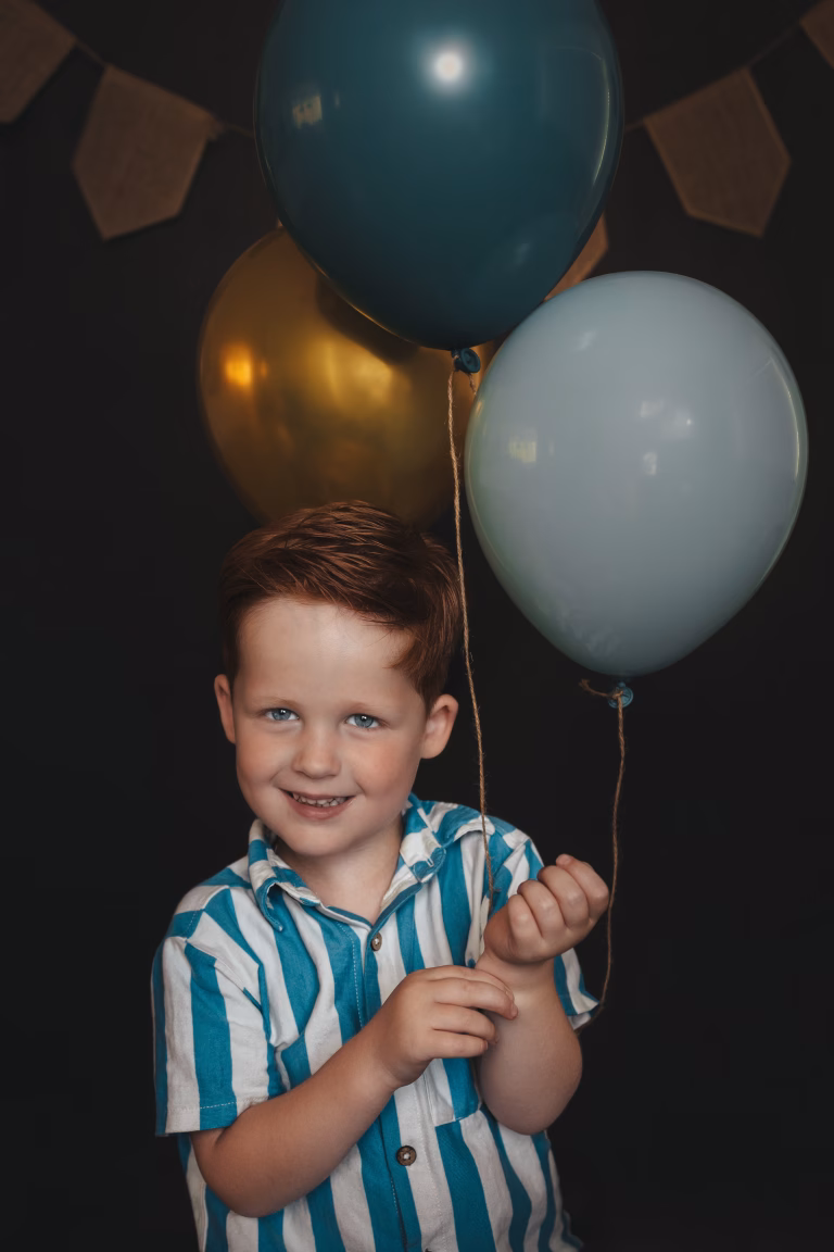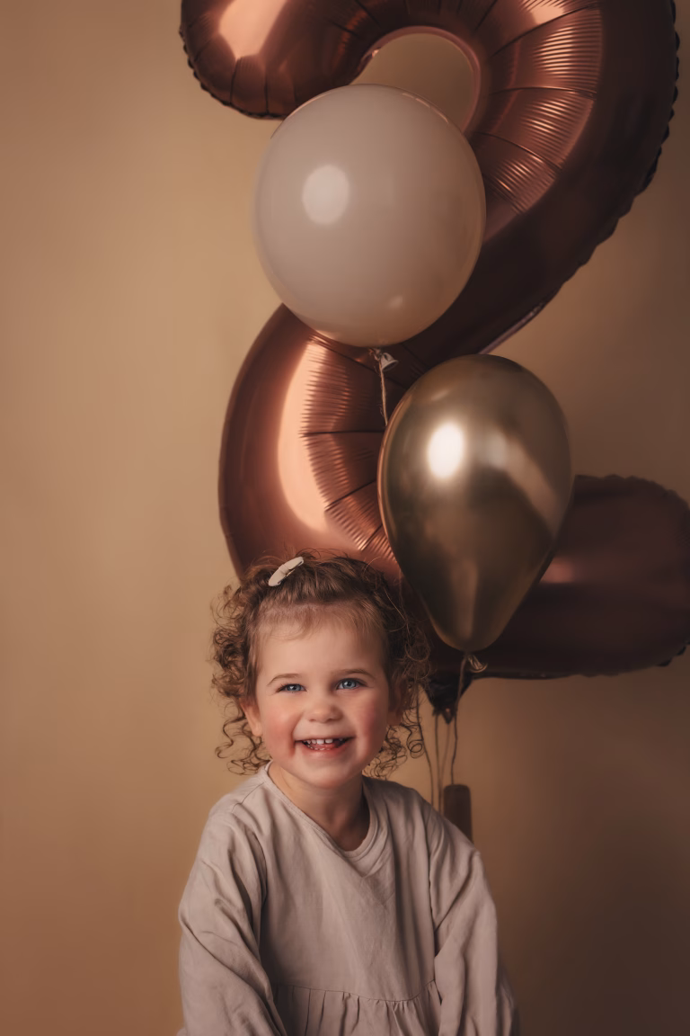 Tijdens een birthday shoot staat jullie kindje helemaal in de spotlight. We maken er iets feestelijks van, met precies wat bij jullie past: een hoedje, kroontje, cijferballon of iets anders leuks. En je krijgt ook nog een mooi gewoon portret zonder al die poespas!
