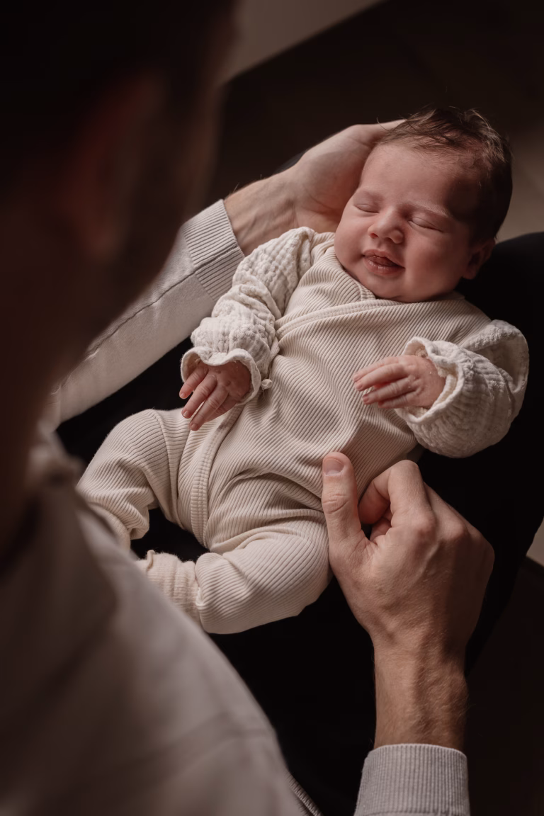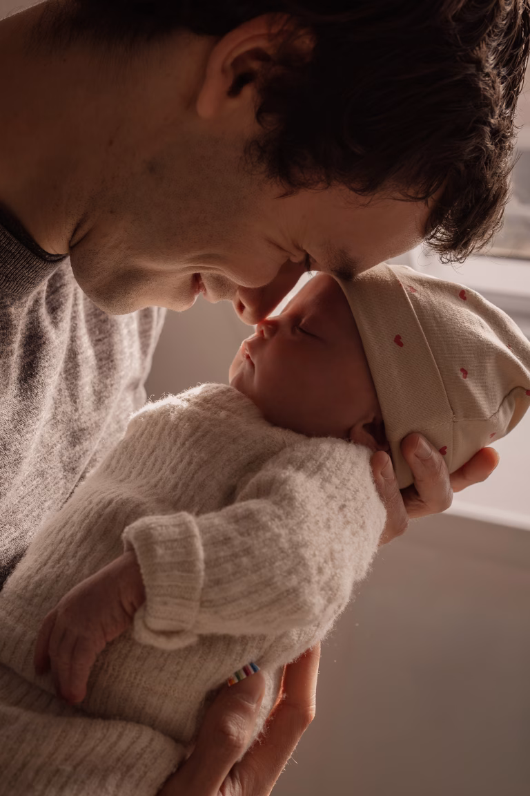 Lifestyle: Deze shoot vindt plaats bij jullie thuis. Dat voelt vertrouwd en ontspannen, waardoor jullie gewoon jezelf kunnen zijn. Ik geef lichte aanwijzingen waar nodig, maar het draait vooral om jullie dagelijkse momenten samen, knuffels op bed, slaapjes in de wieg of mooie momenten bij het raamlicht.
