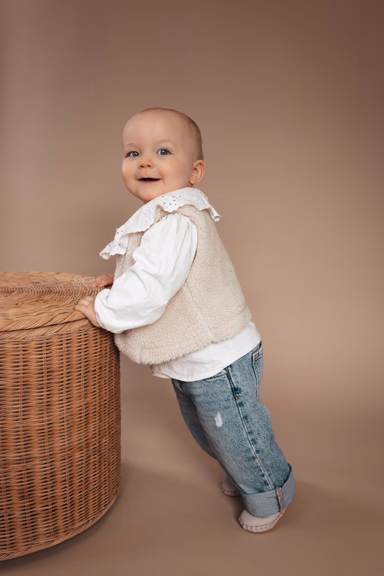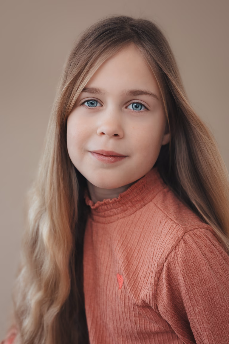 Tijdens de shoot begeleid ik je kind rustig. Ik geef kleine aanwijzingen waar nodig, maar laat vooral ruimte om zichzelf te zijn.